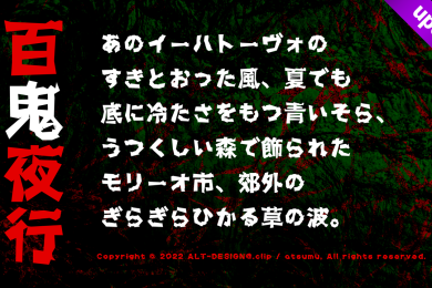 2022年5月17日2026年1月18日 atsumuフォント一覧・和文フォント ホラーフォント「百鬼夜行」日本語書体無料DL個人商用可 ホラー系の日本語フォントを作りました。 このフォントには、ひら/カナ、記事の続きを読む
