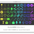 フォントタイトルは和名ですが、タイプする時は英字大/英字小/半角記号/数字で出力します。日本語でタイプしても出力しません。ABC順ではなく、キー配置のQwerty順でタイプする方が繋がりのある記号が出力します。ウェブマークは「みんなのWEBアイコンフォント」で公開しています。